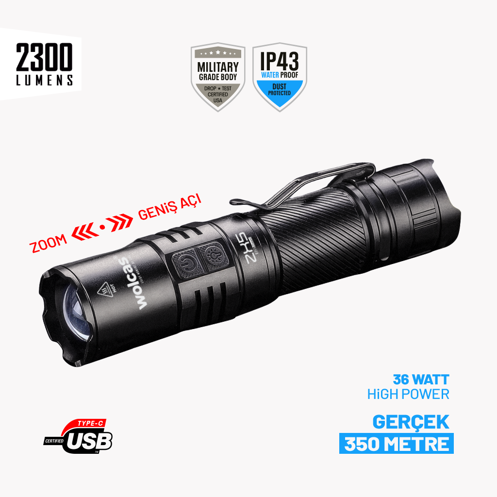 Wolcas ZX5 Ultra Zoom — Su Geçirmez, Yüksek Güçlü ve Yakınlaştırılabilir El Feneri (2300 Lümen / 350 m Menzil)