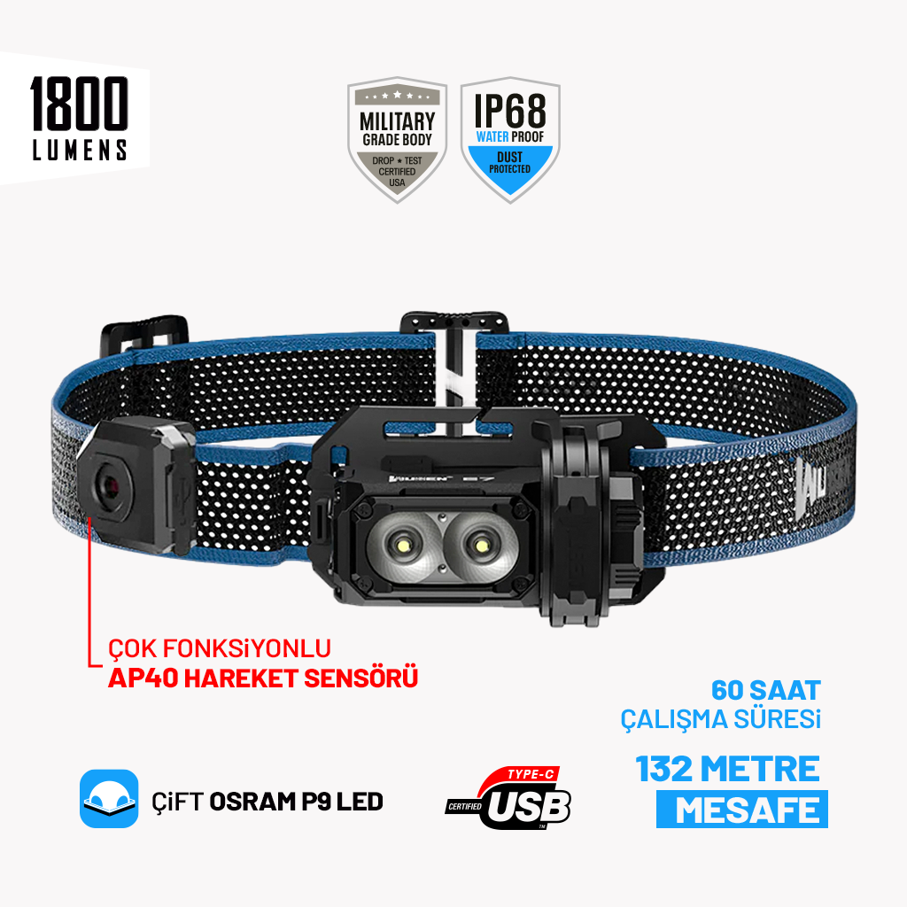 180 ° geniş açılı aydınlatma ile 1800 lümen maksimum parlaklık, iki OSRAM LED ile donatılmış, 6 çok yönlü aydınlatma modu ve etkileyici 132 metrelik ışın mesafesi sunmaktadır.